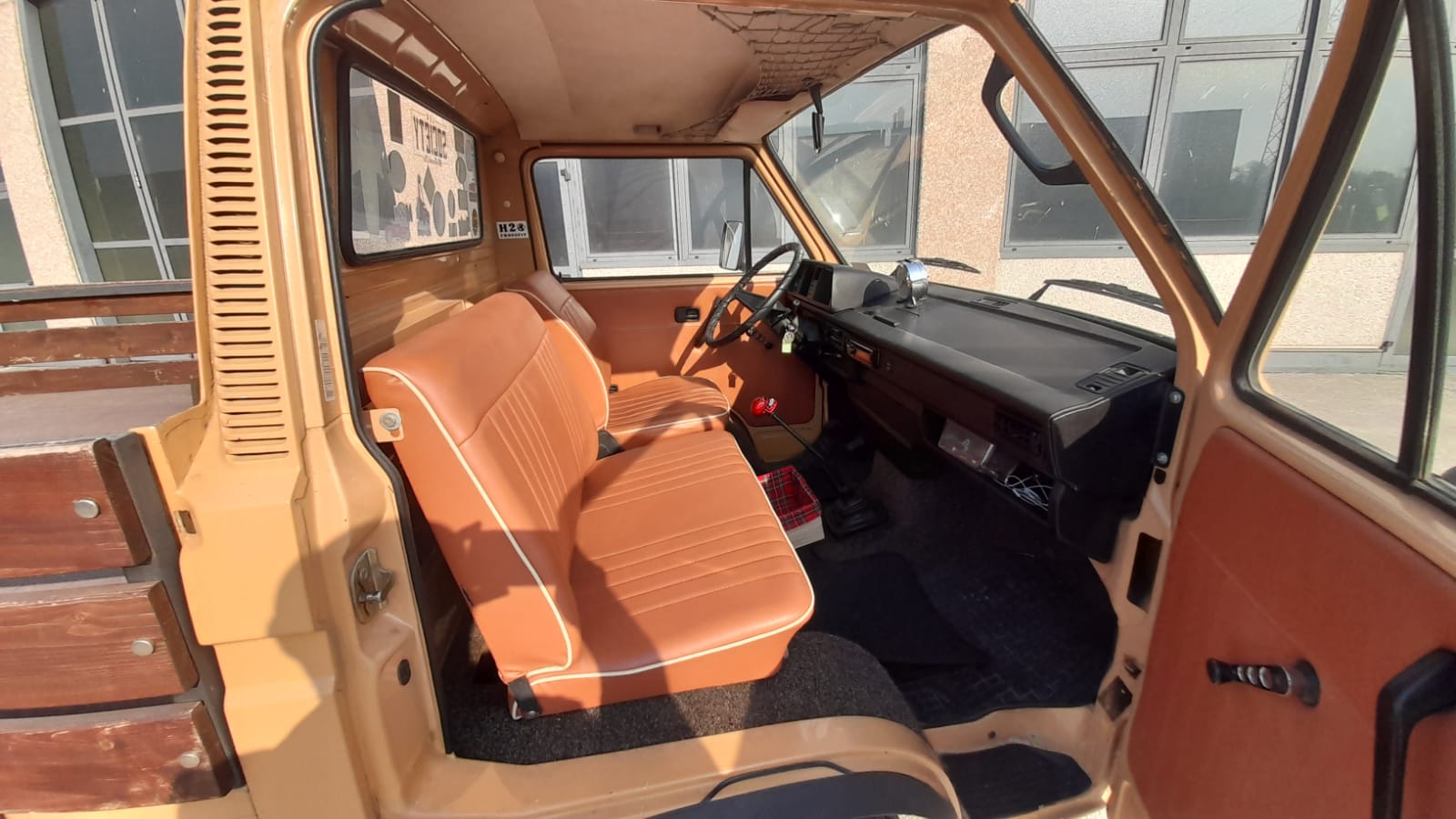 Volkswagen T3 Pick Up 1.6 diesel del 1984, sponde in legno, assetto ribassato con sostituzione molle originali con kit specifico, motore completamente rifatto. La carrozzeria è stata completamente risanata ma sono state mantenute alcune “irregolarità” per lasciare i segni del tempo che rendono il pick up più “vissuto” non cancellando la sua storia. Interni curati. Pratica ASI con CRS in corso.